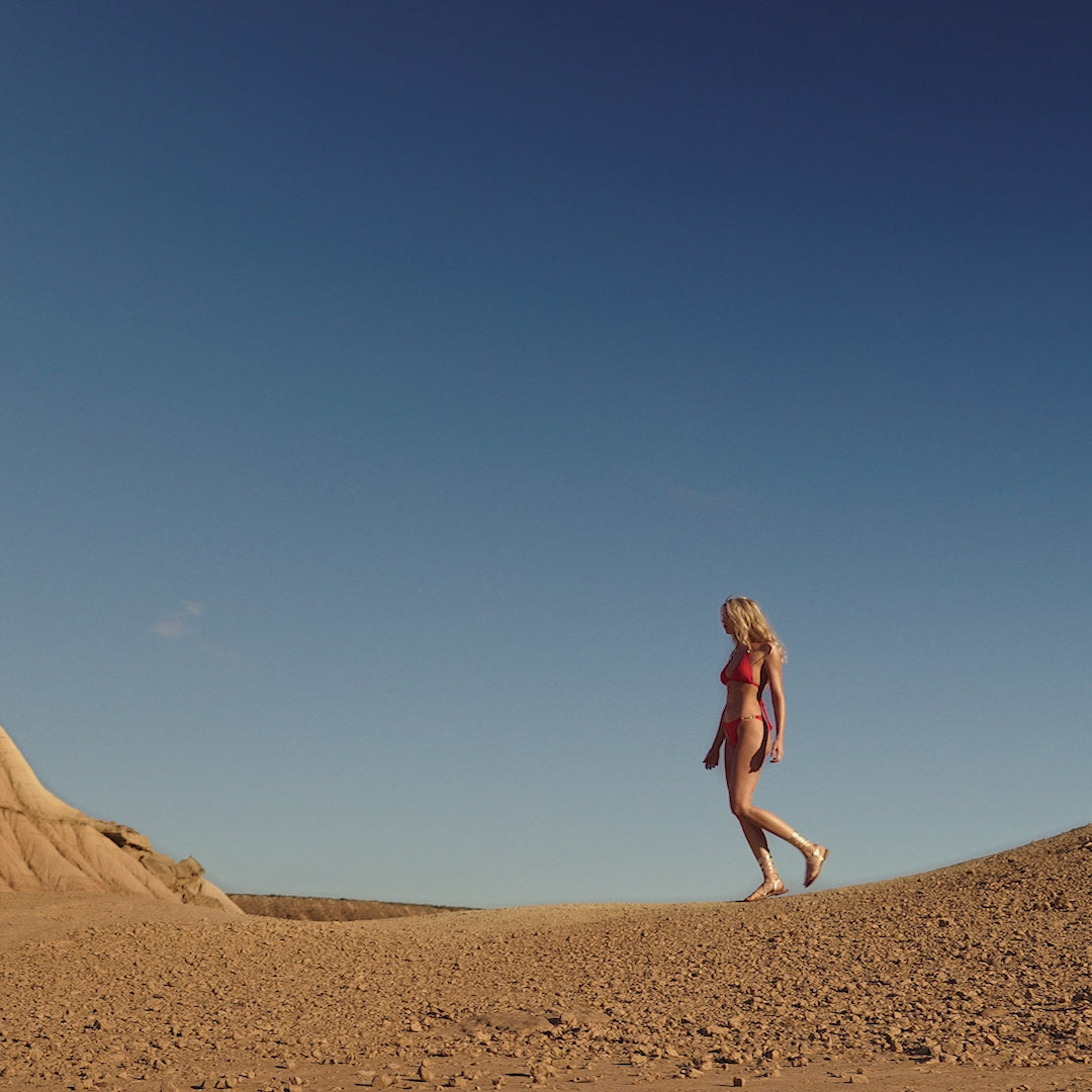Dans un décor aux reliefs sauvages, lacollection été 2026 dévoile un voyage chromatique audacieux : rose indien,jaune acidulé, turquoise précieuse, safran et cardamome composent un tableau bohème et intense.