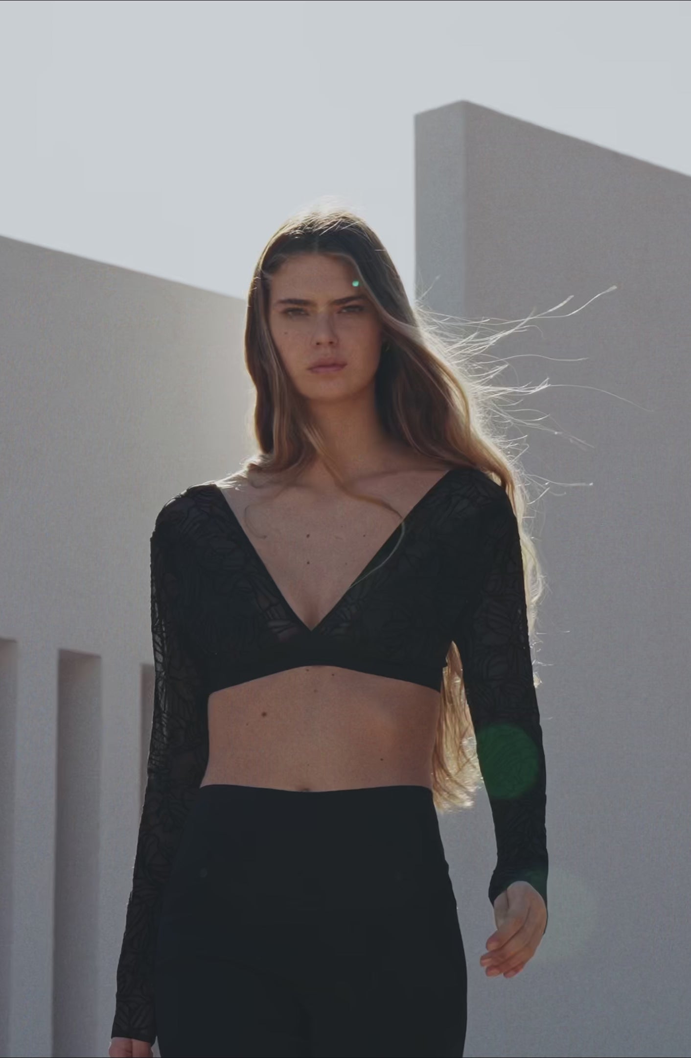 Black cropped top with long sleeves