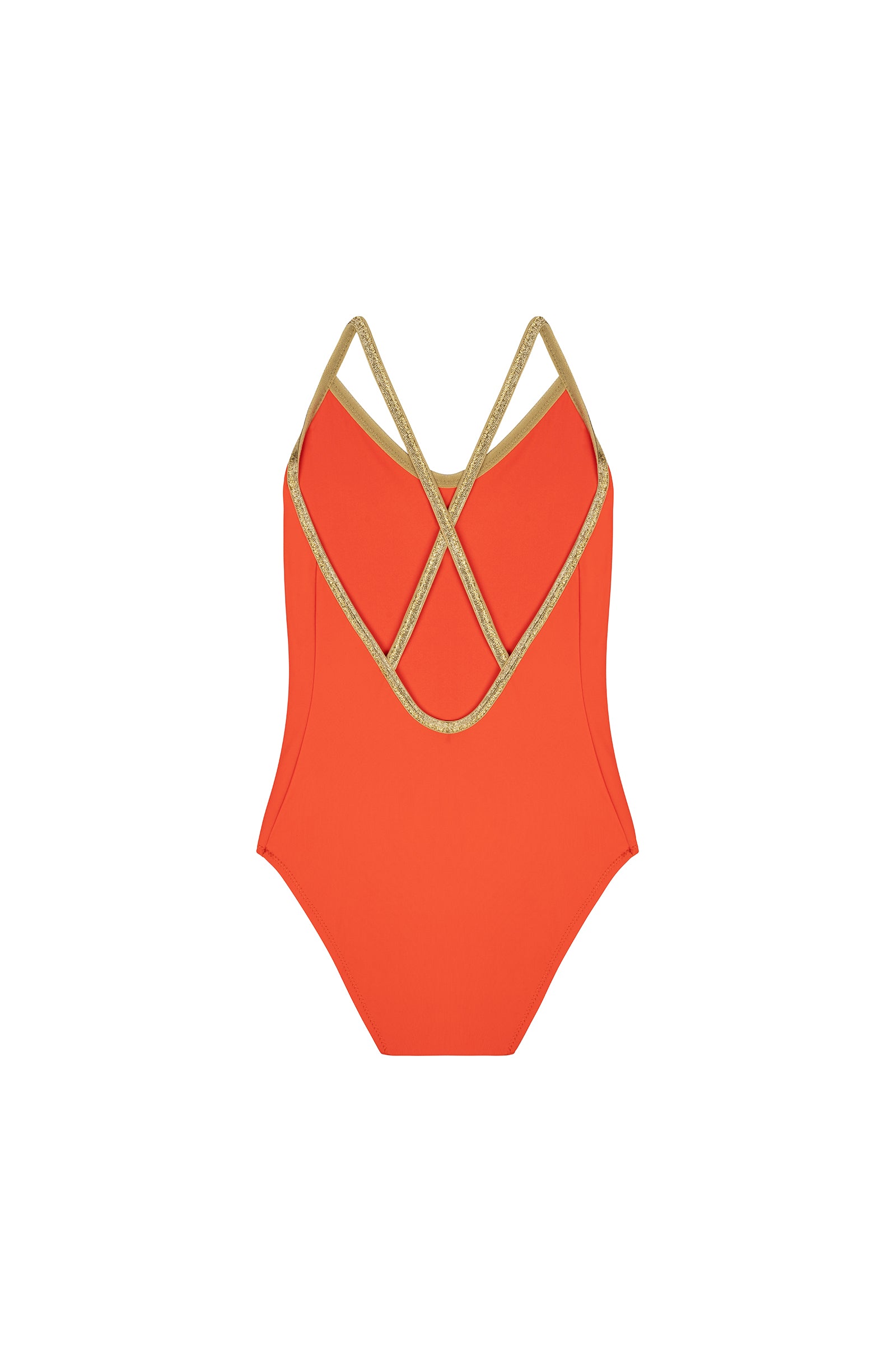 Maillot de bain une pièce orange et lurex doré pour enfant