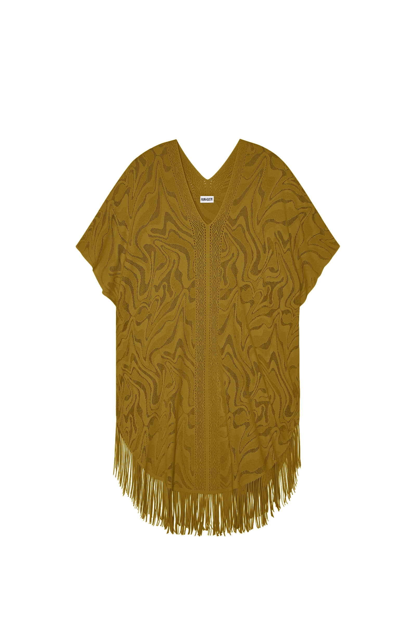 La tunique poncho PERY reprend l’iconique modèle en dentelle fine JESSE. Il se décline sur un nouveau motif, inspiré des ondes marines. Une invitation délicate au voyage. Bronze, une teinte minérale authentique, combinaison de jaune-vert.